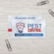 The back includes space for your name, job title, contact info, and a neatly arranged list of pest control services - from insects and rodents to termite treatment and eco-safe plans.