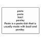 Pesto Basil Pasta Reading Flashcards for Adults Table Number