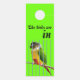 This handy door hanger might save your bird's life! Hang this safety alert on your doorknob to let family and visitors know when the birdies are running loose and when they are tucked in their cage. Prevent escapes and accidents and keep your feathered family safe. <3 Cute Greencheek Conure parakeet graphics with bright colours to remind at a glance. This useful sign makes a practical gift for pet parrot owners.