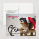 Your customers will appreciate that they are remembered when they receive this cute Christmas post card! The front features an image of a cute puppy wearing a red and white Santa hat and riding on a sleigh. The text in red on the front can be changed to anything you'd like, as can the additional text fields on the back. An economical and thoughtful way to advertise your veterinary clinic or pet care business by sending your customers well wishes.