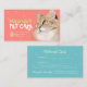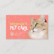 Pet Bathing and Grooming / Pet Care / Pet Sitting / Pet Grooming / Pet Food Shop / Pet Beauty Salon / Animal Hospital / Animal Clinic Referral Card / Loyalty Card / Punch Card Business card Template - Adorable Cat on Pantone Living Coral Colour Background.