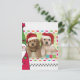 season greeting christmas pet photo cards. This Christmas photo card design is customisable with your own family name and photo! Or of course your dog. There's a christmas background, and the photo is separated from the design by a border. A fun doodle of christmas ornaments with reds and greys followed by "peace and Love" with a handwritten font feel. The rest of the text is customisable! Personalise with your own Christmas greeting or wishes, and your own family names. You can even add the date.