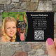 This eye catching business card design features your custom photo and QR code with all your details on the front with a blank back for handwritten notes.. Fill in the template fields with your information, remove any text or edit using the design tool to select a font style, size, and colour you prefer. Replace the custom photo with yours and replace the QR code with yours. The QR code link can lead customers to your website, photographs of your work or reviews. Transfer the design where it fits appropriately like on the luggage tag in the transfer scroll on the page. Placeholder photograph courtesy pixabay.com.