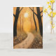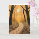 Paw prints travelling into a warm painterly forest towards the sun. Customisable interior.