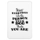 "start every day like the person you dog thinks you are" funny pet dog quote text in a beautiful chalk board vintage text style.