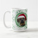 Pet Dog Photo with Santa Hat on Green Snowflake Coffee Mug