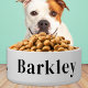 A simple yet cute ceramic dog bowl to personalise with your dogs name .
