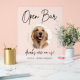 Cute editable pet wedding signature drink sign features a circle frame to feature your pet's picture along with calligraphy font Open Bar, drinks are on us! Personalise with the bride and groom's names and pet name.