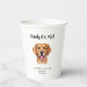 These dog wedding paper cups are the a great way to include your pet in your wedding. This design is complete with the saying "Drinks On Me!", the dog's name. the bride and groom names, the date, and an adorable Golden Retriever graphic. I have many other dog breeds available in my store. If you look at my "dog wedding napkins" in my store, you will see a selection of different breeds. If you find a breed there that matches your dog, please feel free to message me on Zazzle *before you order* and I can get that breed on paper cups for you.