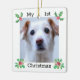 Celebrate a 1st Christmas with this cute photo ornament decorated with watercolor festive foliage and berries.
