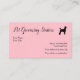 Pet groomer business card template in a classy design in chic pink with image of a Poodle dog and elegant lettering for your company name. with text layout you can customise online. Perfect for anyone that does pet grooming, has a pet salon, or a professional pet groomer.