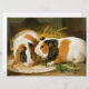 This design features a painting by the English artist James Ward (1769–1859). It depicts two guinea pigs feeding. One of them is eating from a lettuce leaf, while the other guinea pig appears to be eating some form of mashed food, and there is also a small segment of apple on the plate that they are sharing. Their hay bedding can be seen behind the two animals as they feed. The original artwork was painted by James Ward in 1843.