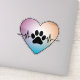 A heart shape with a paw print in the center. The heart is bordered by an electrocardiogram (ECG) line, indicating a heartbeat. The color gradient of the heart transitions from purple at the top to a soft yellow at the bottom. The paw print is centrally placed, and the ECG line runs horizontally across the heart, starting from the top and ending at the bottom.
