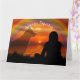 A heart warming and poignant condolence card for a lost pet showing the silhouette of a woman looking out at a beautiful sunset and the faint image of a ghostly dog presence standing close by keeping her company. A rainbow overhead represents the bridge dogs pass over to wait for the day they will meet their owners again. Text on front customisable and left blank inside to write your own message.