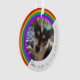 A two sided ornament with a rainbow image on both sides. Plenty of room for two photos and a short, personal sentiment in honour of your pet that has passed on. Original design by Night Owl's Menagerie, 2023.