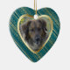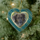 Here's an attractive photo template heart shaped pet memorial ornament that uses a teal and gold aztec pattern as the background. Your photograph takes centre stage and is lined in gold on the front. The back of the ornament has the same pattern and heart frame, with your custom text at the centre. A beautiful memorial.