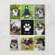 This beautiful custom dog memorial postcard is personalised with adorable pictures and memories of your sweet pup. Customise this thoughtful condolence gift with your own custom 8 pet photographs around a black square with a pretty white paw print and your dog's name in the centre to express your sympathy. A classy remembrance design for someone who had the loss of their beloved doggy.