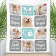 Celebrate your best friend with a custom pet memorial photo collage blanket in a modern grey and teal turquoise colour block design. This unique pet memorial dog photo keepsake blanket is the perfect gift for yourself, family or friends to honour those loved .
