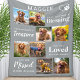 Celebrate your best friend with a custom pet memorial photo collage blanket in a elegant modern design. This unique pet memorial dog photo collage keepsake blanket is the perfect gift for yourself, family or friends to honour those loved .