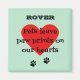 A magnet with a lovely thought to remember your pet by: "Pets leave paw prints on our hearts". Enter the name of your pet to create a special personalised design. Black text on a large red heart, with black paw prints and a soft aqua coloured background.