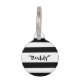 Customise this modern black and white stripes pet ID tag with your pet's name and QR Code information text on the back. Replace the QR Code sample with your own.
