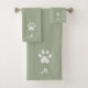 Pet paw and monogram on sage Bath Towel Set. Elegant simple design for pet lovers!