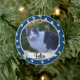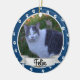 Add a photo and name or year to this paw print photo ornament accented in blue for any pet.