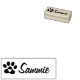 Rubber ink stamp featuring a dog or cat paw print with a heart inside and customizable name in a bold script style font.
