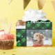 Pet Photo Green Buffalo Plaid Woof Merry Christmas Wrapping Paper