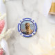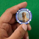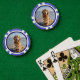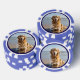 Pet photo personalised poker chips. Replace the photo with your own and change the text. Easy to do from the product page. White script with photo and blue background.