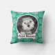 Pet Photo with Dog Bone and Paw Prints Green Cushion