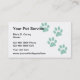 Pet services simple business card design with paw prints in the background in a modern organized layout you can customize online. Best business cards for a Veterinarian, dog trainer, or mobile pet grooming professional.