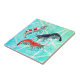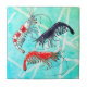 A trio of fancy shrimp swim against an abstract bright turquoise background. Crystal Red, Blue Dreams and Cherry Shrimp, bearing eggs, make a colourful collection. For anyone who loves these tiny aquatic animals and enjoys them as a fascination hobby and quiet pet. Use this as a home decor accent or trivet. Watercolor artwork & design by Tuzi Williams.