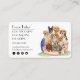 A super cute, pet business card for pet sitters, pet care, pet adoption, pet hotels, dog walkers, dog groomers, dog trainers, doggy daycare and veterinarians. Soft, unique watercolour pet elements featuring various dog breeds, a rabbit and exotic bird. Customize your name and business details by editing the text template.