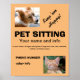 Pet sitting flyer to promote your pet care business. Photo of cute dog and cat gets people's attention, or edit to change them out for your custom photos. Customise all text to your own information. For any pet related business: pet sitting, grooming, boarding, etc. Available as download.