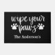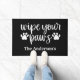 Personalise this Wipe Your Paws Black and White Doormat. Available in two sizes. Perfect for the family or person with pets.