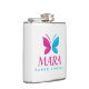 The flask itself is fine. It’s a cheap flask, obviously bought in bulk, however am prepared to overlook that. Given that it is a personalized item, I would have liked to have seen gift boxing instead of the generic packaging. Terrible printing, and/or quality. It’s a cheap, tacky vinyl. It is not cut straight and is also applied in a way that it is overhanging the bottom, causing the glue to catch on items and it will eventually roll and tear, damaging the wrap.