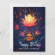 Intricate flourishes and radiant accents surround the lotus, with deep purples and vivid blues weaving through the design like sparks from celebration. Set against a rich, dark backdrop, these colours dance with luminous intensity, making the central flame all the more captivating.