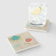 The coasters are gorgeous, a quality feel and heavy weight. They look like a precious archeological find. A rustic stone juxtaposed with a modern floral black and white print. I like the way the print goes slightly imperfect on the cut stone edges giving them a kind-of natural beauty.