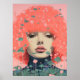 This captivating artwork features a woman with vibrant pink hair adorned with delicate flowers, creating a striking and whimsical appearance. The combination of bold colour and natural elements evokes a sense of creativity and individuality.