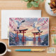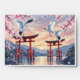 Beneath drifting Sakura petals, two cranes soar in silent harmony over scarlet torii gates, their cries mingling with the soft evening wind. The world is hushed as falling blossoms settle on tranquil waters, capturing a fleeting moment of romance and the delicate passage of spring. Here, love and beauty touch the ephemeral quiet of dusk.