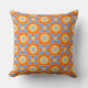 Alternate circles and squares with 4 petal shapes of rugged blue and light yellow within the circle of orange background colour