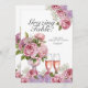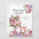 Features prosecco glasses with florals paired with the sweet invitation: