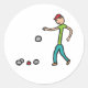 A petanque player releases the boule toward the others which have already been played. Cool illustration of the game of boules or petanque.
