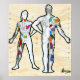 Vintage 60s Peter Max style painting Human muscle chart Posters.This colourful anatomical chart illustrates the human muscular system in full detail. Every part of the human muscular system is labelled in this detailed anatomy poster.