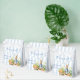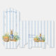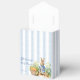 Peter rabbit baby shower favours, Peter rabbit with a blue jacket blue in vegetable garden baby shower personalised favour boxes. A cute bunny in a blue jacket standing in a garden with carrots for a baby boy baby shower monogrammed favour box, vintage retro story book baby shower personalised favours, retro dusty blue stripes baby shower monogrammed favour box