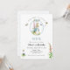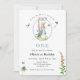 Cute blue and white Hand painted Watercolor peter rabbit wildflowers and blue ribbons baby boys 1st Birthday invitation.