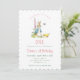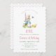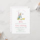 Hand painted Watercolor peter rabbit pink and white baby's 1st Birthday invitation.