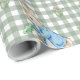 Delight garden lovers and storybook fans alike with this charming wrapping paper featuring a watercolor-style bunny in a blue coat, reminiscent of beloved classic tales. The soft green gingham background is sprinkled with playful gardening tools, fresh carrots, and leafy greens—creating a nostalgic, countryside feel. Perfect for baby showers, Easter gifts, spring birthdays, or whimsical woodland-themed occasions!
