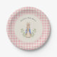 Peter Rabbit Pink Ivory Gingham Baby Shower Paper Plate